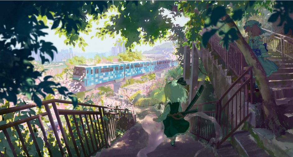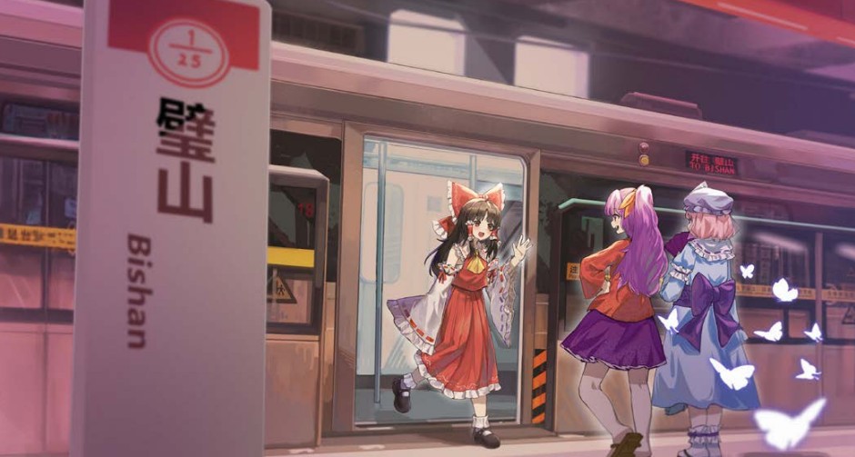 同时,本刊在刊物末尾插入了一张搭配Q版东方人物的线路图。该线路图中,幽幽子的扇子上的图标分别为重庆轨道交通的标志与重庆铁路集团的标志。