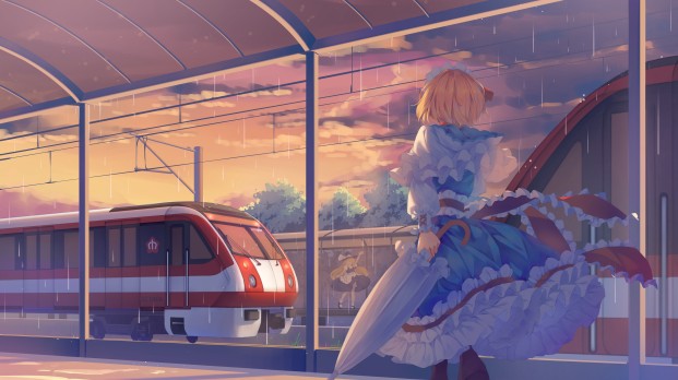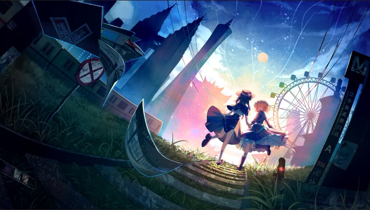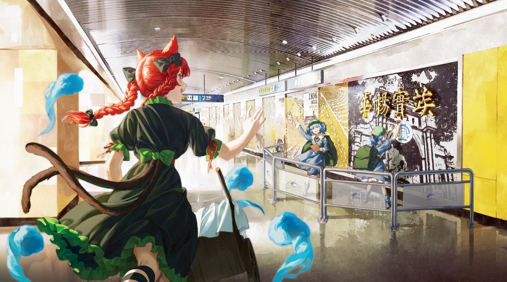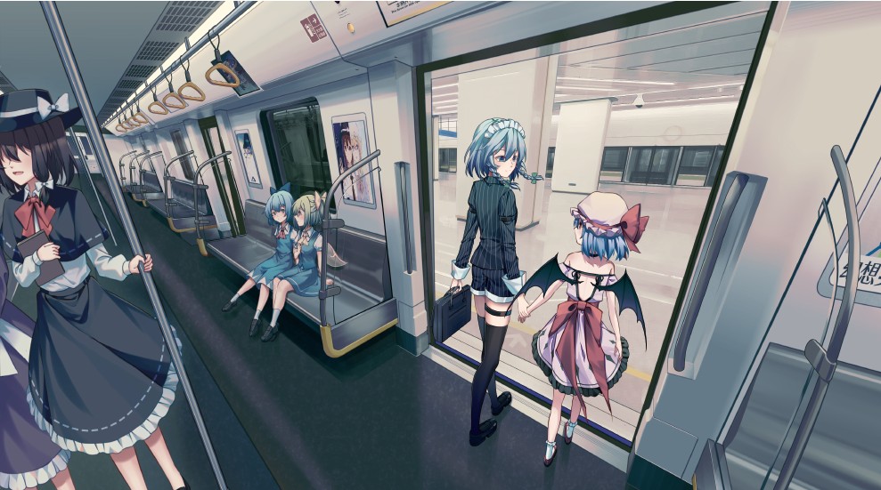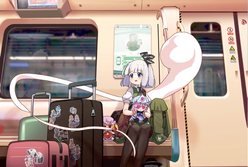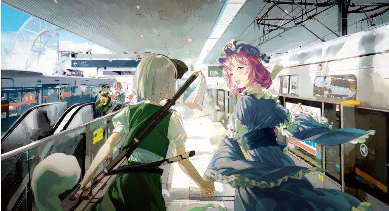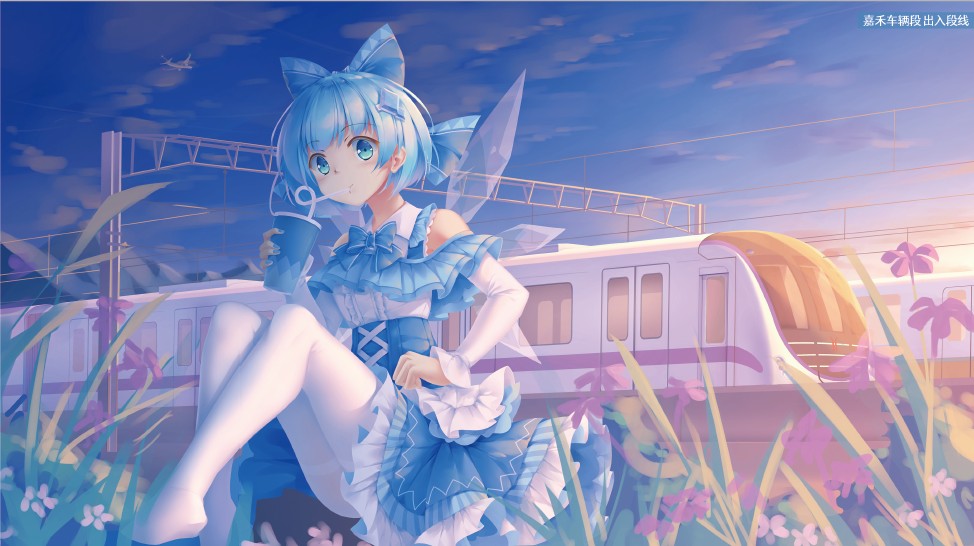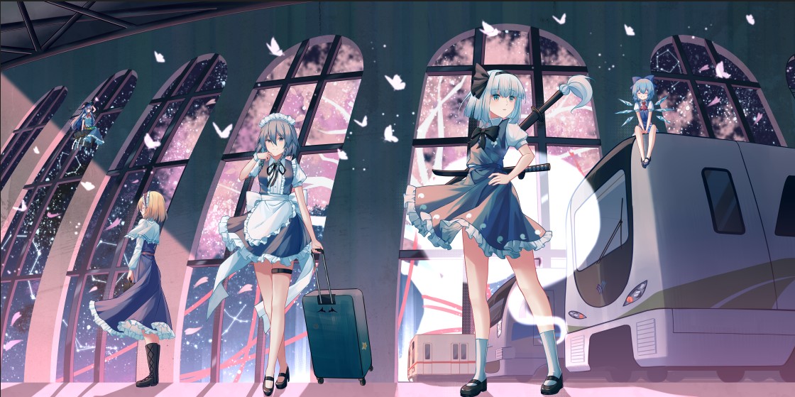社团三周年贺图。爱丽丝和琪露诺代表旧班子和新班子,背景中的树木是西行妖,列车对应重要成员所在地 cat_米诺 跳转
