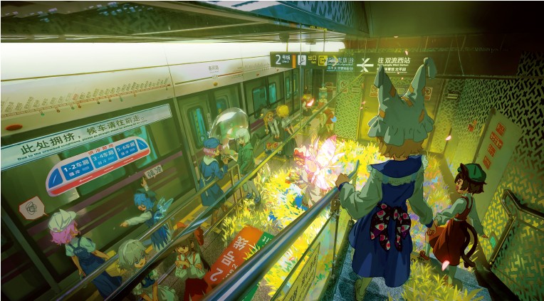8 东郊记忆 电子屏里的海报是天府广场,本图neta了2019年的成都东方liveparty,也与车站的属性契合